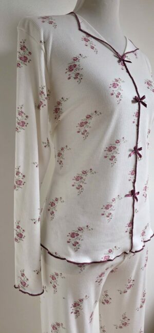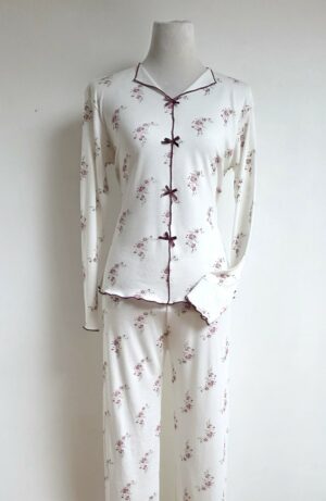 Découvrez ce un pyjama femme à motifs fleuris bordeaux made in Turquie, qui allie parfaitement style, confort et délicatesse. Cet ensemble blanc fleuri, sublimé par de jolies noeuds bordeaux, apporte une touche de fraîcheur et de féminité à votre dressing de nuit. À la fois tendance et intemporel, il est pensé pour celles qui aiment se sentir belle même dans leurs moments de détente.